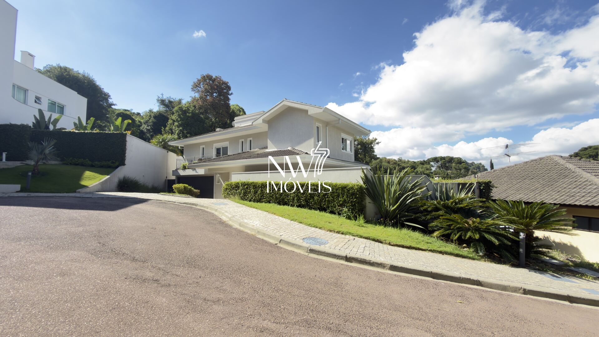 Logo na chegada, o imóvel impressiona pelo acesso totalmente plano, incluindo o primeiro pavimento e a garagem, que conta com duas vagas. Um diferencial que traz praticidade e conforto no dia a dia.
